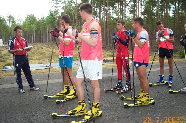<- The mighty Mark 'Fred' Gee, triple Olympian, who shared the vision to create a UK-based Biathlon Development system, and retired from international competition in 2003 even with many years athletic career beckoning, and took up the inaugural post of Coach to start up the new GBR National Biathlon Development Squad. Mark was one of the original 'biathlon pathfinders' of the modern era, who believed and proved that we could develop 'anywhere' given the chance. .